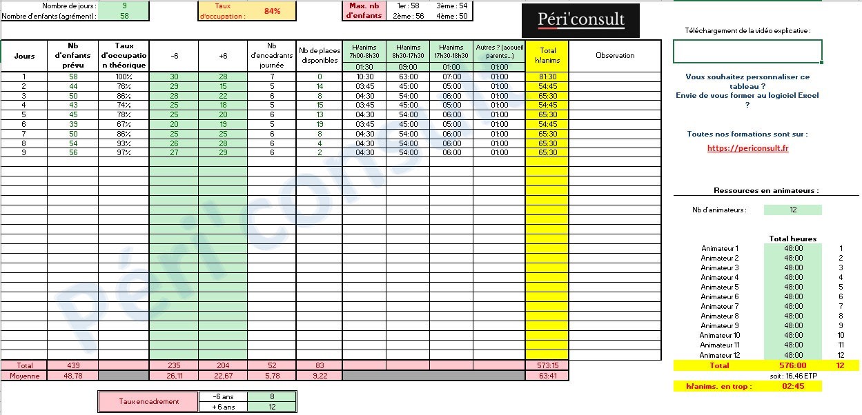 la différence entre ressources disponibles et besoins (en h/animateurs)